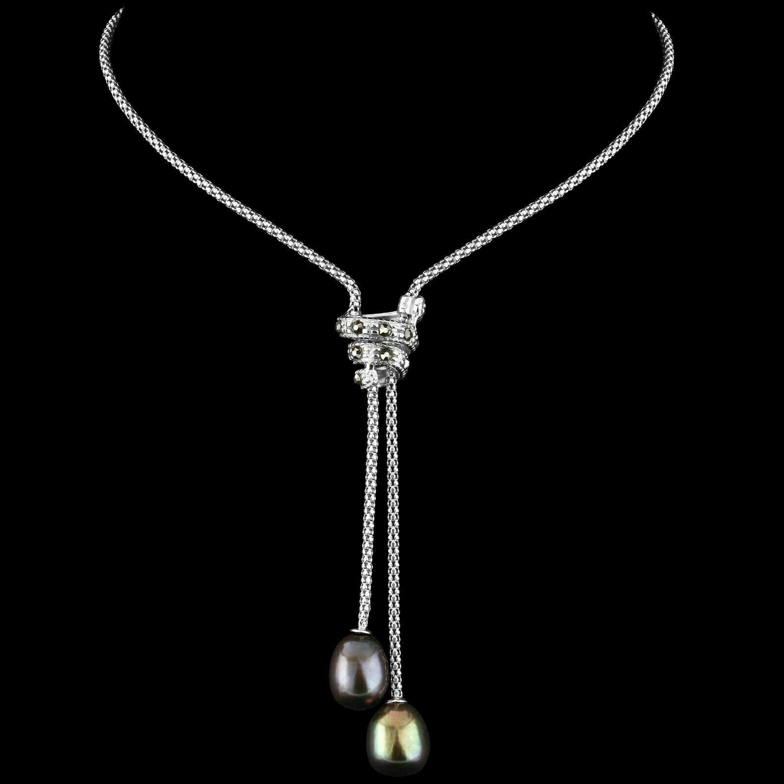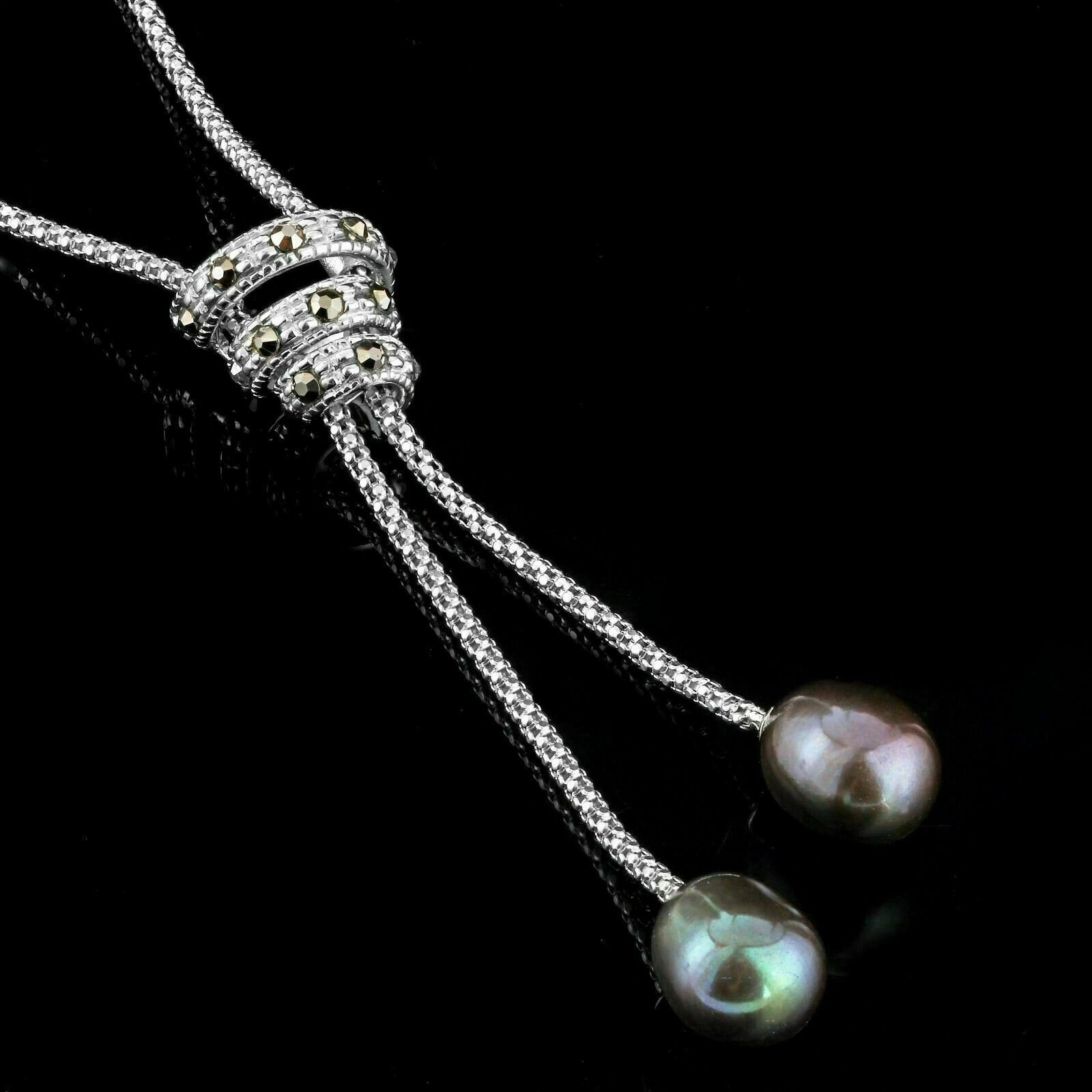 Natural 10*8 mm Tahitian Fresh Water Pearl Swiss Marcasite in Sterling Silver 925