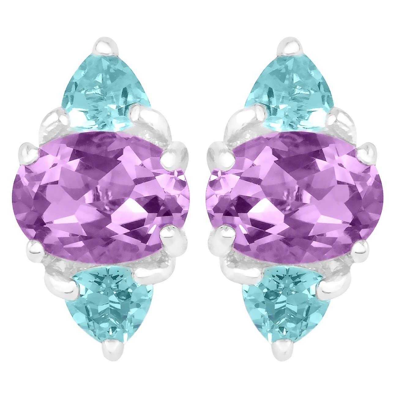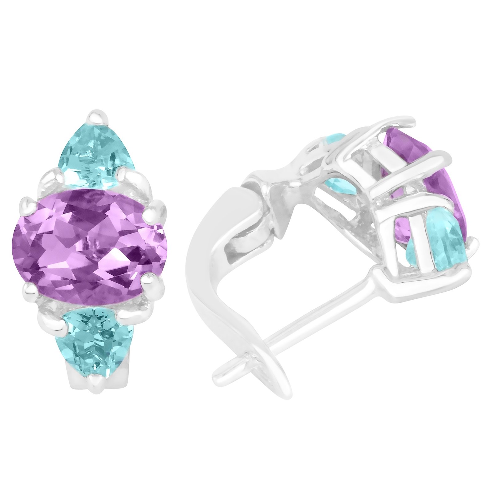 Unheated Natural African Amethyst & Sky Blue Topaz Earring in Sterling Silver 925
